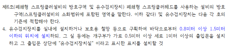 스프링클러설비 방수구역에 설치하는 화재감지기 설치 기준