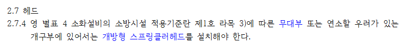 다. 의무규정이 없을 뿐, 개방형 헤드로 설치해도 무방
