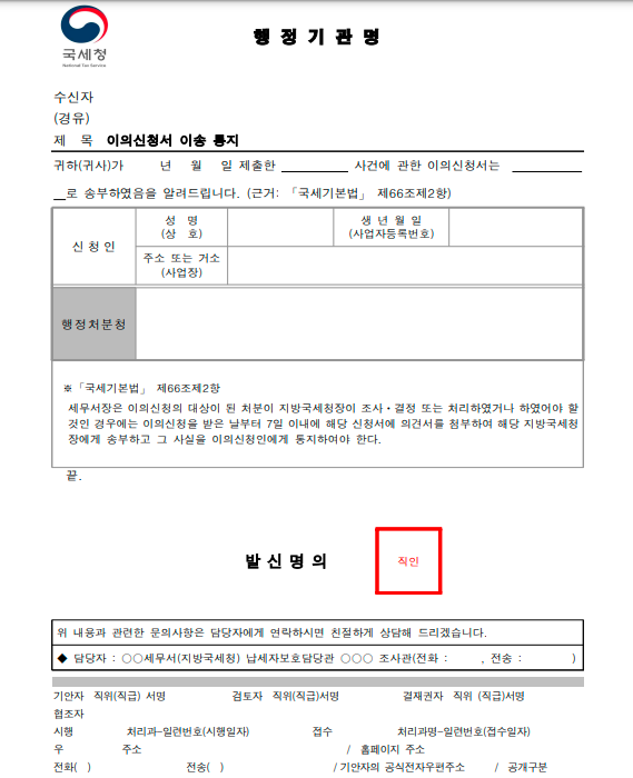 ③ 제1항에 따라 지방국세청장에게 하는 이의신청을 받은 세무서장은 이의신청을 받은 날부터 7일 이내에 해당 신청서에 의견서를 첨부하여 지방국세청장에게 송부하여야 한다.