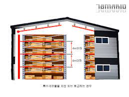 <문제> 다음과 같은 랙크식 창고에 스프링클러설비를 설치하고자 한다. 헤드는 정방형으로 배치하고자 한다. 이 랙크식 상고에 설정해야 하는 방호구역의 수와, 방호구역 산정에 적용할 바닥면적을 적용하는 방법을 알아보자.