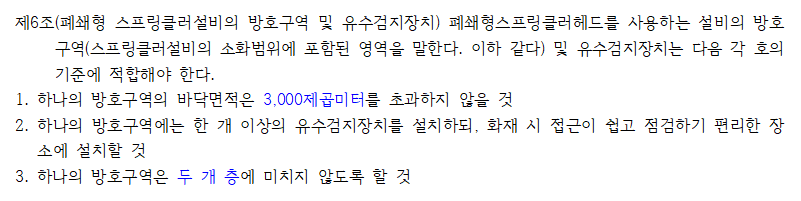 헤드 열과 상관없이 건축법상의 바닥면적을 적용하는 이유?