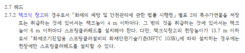 랙크식 창고에 스프링클러설비의 설치