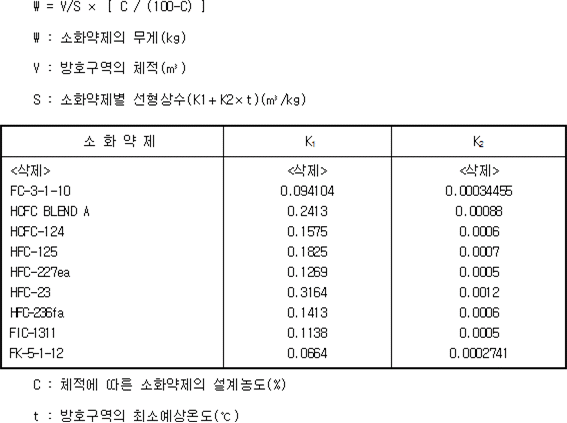 방호구역 소화설비 설계농도 도달 시간