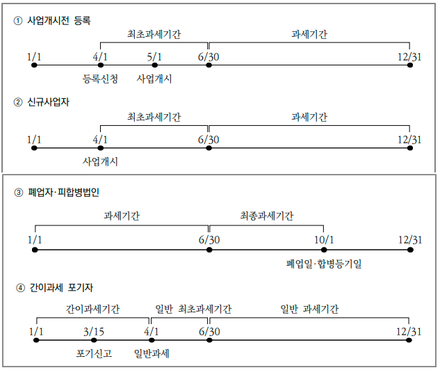 과세기간이란 부가가치세의 과세표준 계산에 기초가 되는 기간을 말하며 납세의무의 성립시기, 과세표준 및 납부세액의 계산기간 및 신고·납부기한을 정하는 기준이 된다.