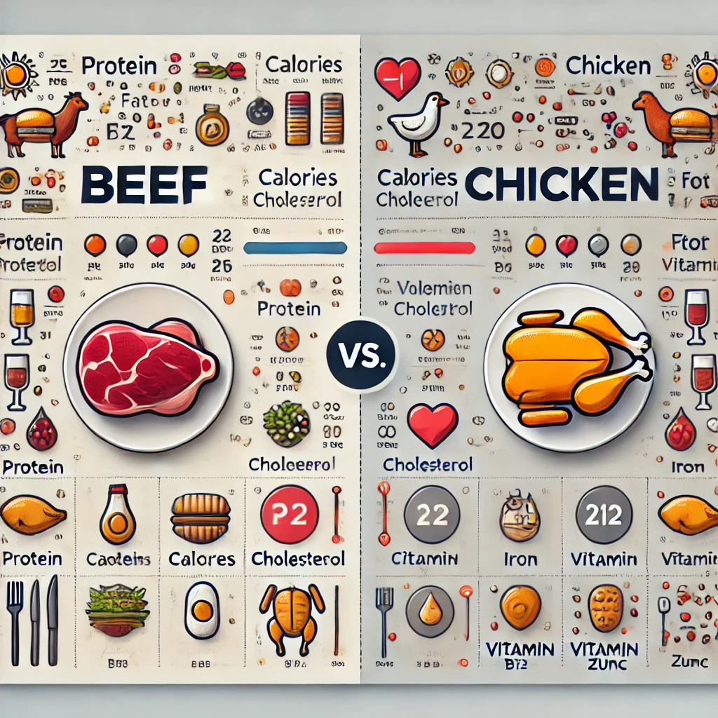 오늘은 소고기와 닭고기의 영양 성분, 단백질 품질, 건강 효과 등을 비교하여 최적의 선택을 분석해보겠습니다!