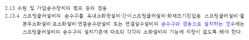 가. 스프링클러설비 송수구 설치기준을 따르게 하는 이유 소화설비들의 화재안전성능기준 및 기술기준을 살펴보면 다양한 소화설비 중 스프링클러설비의 송수구 설치 기준이 가장 많은 사항을 내포하고 있다.