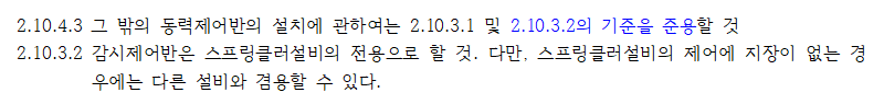 스프링클러설비의 동력제어반도 다른 소화설비의 동력제어반과 겸용할 수 있도록 하고 있다.