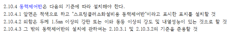 동력제어반의 외함은 두께 1.5㎜ 이상의 강판 또는 이와 동등 이상의 강도 및 내열성능이 있는 것으로 하여야 한다. 그래야 화재로 인한 피해를 최대한 버틸 수 있는 기능을 가질 수 있기 때문이다.