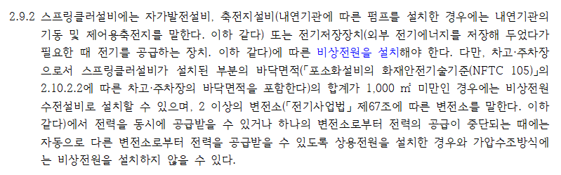 스프링클러설비용 비상전원과 예비전원