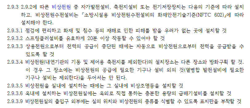 스프링클러설비 비상전원 설치 기준