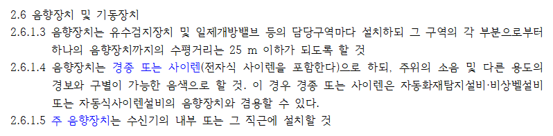 다. 각 부분으로부터 음향장치와의 수평거리는 25m 이하