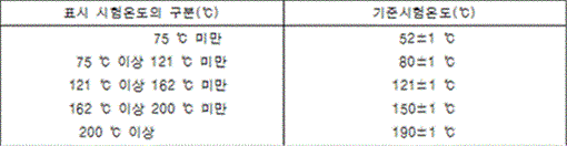1. 유리벌브는 표시온도보다 섭씨 20도 낮은 온도로부터 분당 섭씨 1도 이내의 비율로 유리벌브 내의 기포가 없어질 때까지 또는 표시온도보다 섭씨 5도 낮은 온도까지 가열한 다음 대기 중에 놓아두어 유리벌브 내에 다시 기포가 생길 때까지 냉각하는 시험을 6회 반복하여도 이상이 생기지 않아야 한다.