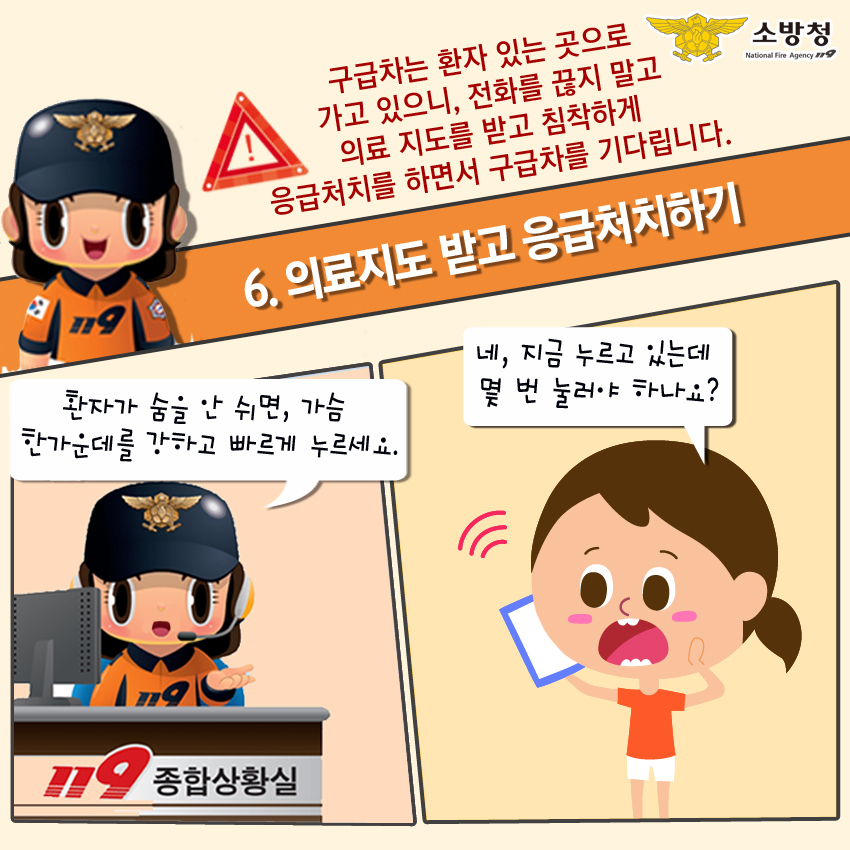 위의 메뉴얼을 숙지하고 위급 상황발생시 메뉴얼처럼 신고하여 소중한 생명을 구해주세요!