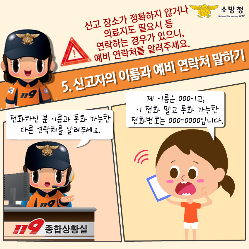 5. 신고자의 이름과 예비 연락처를 말해주세요.