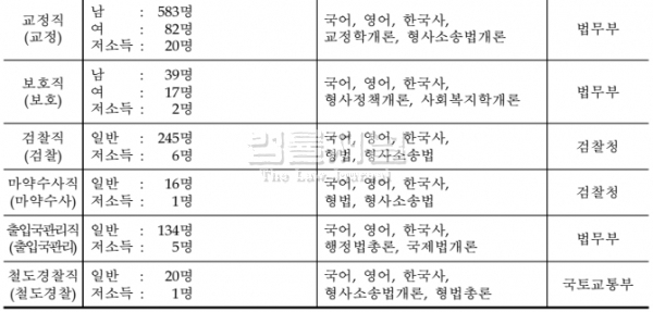 시험 과목: 국어, 영어, 한국사 공통과목 외 직렬별 전문과목 2개.