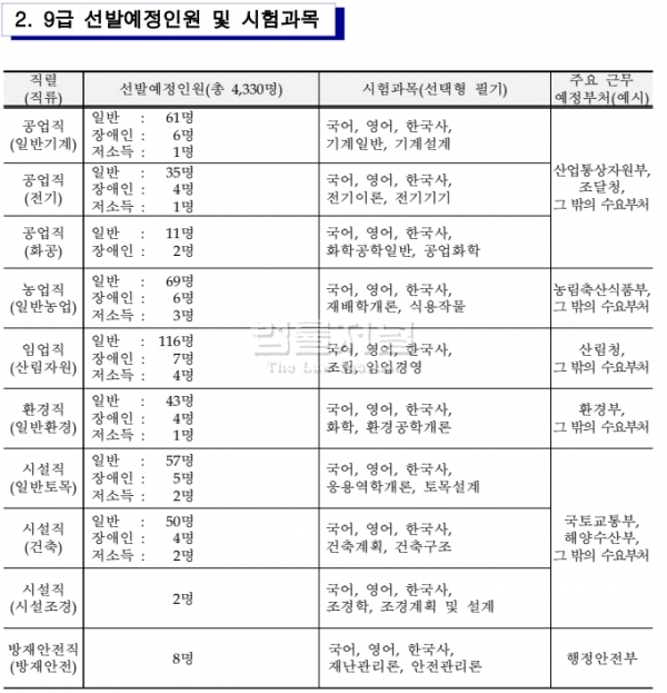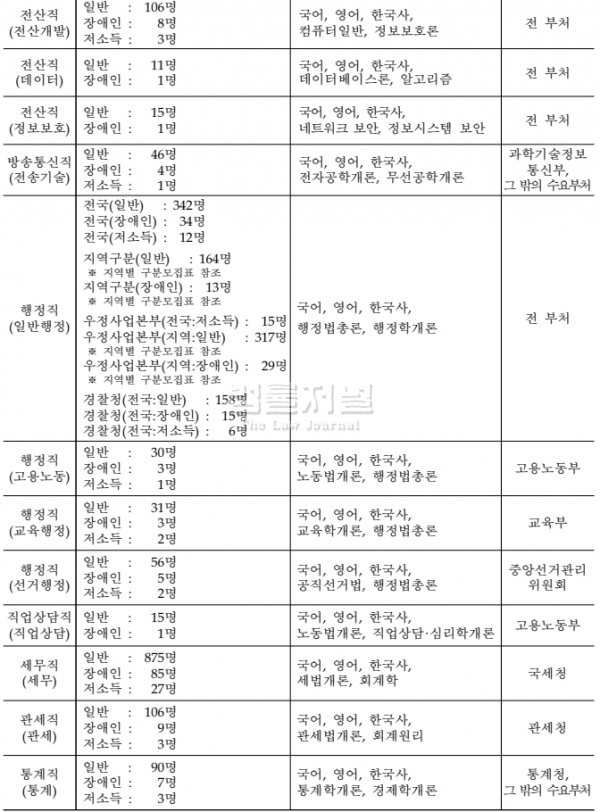 주요 직렬별 선발 인원은 다음과 같다: